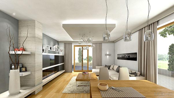 Projekt wnętrza salonu mieszkalnego w Łodzi